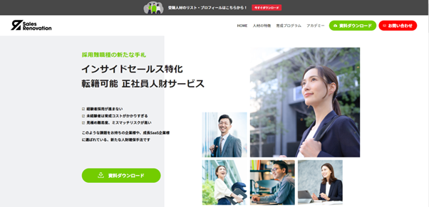 今回のリニューアルは、提供サービスの1つである「インサイドセールス人材」のニーズ拡大に伴い、サービスの特徴やベネフィットをより具体的に理解いただくことを目的に