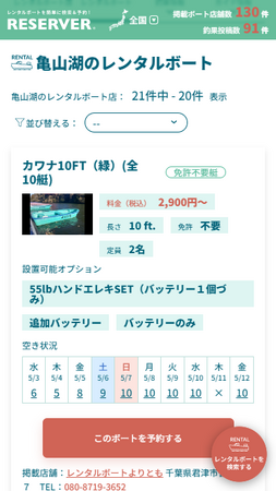 RESERVER(リザーバー)加盟のレンタルボート店は現在31店舗あり、各フィールドごとに希望のボート・日付からボートの検索・予約が可能です。