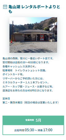 店舗の地図や出船時間、最近の店舗利用バサーの釣果など、店舗ごとにバサーが欲しい詳細な情報が掲載されているので、店舗への問合せが不要です。
