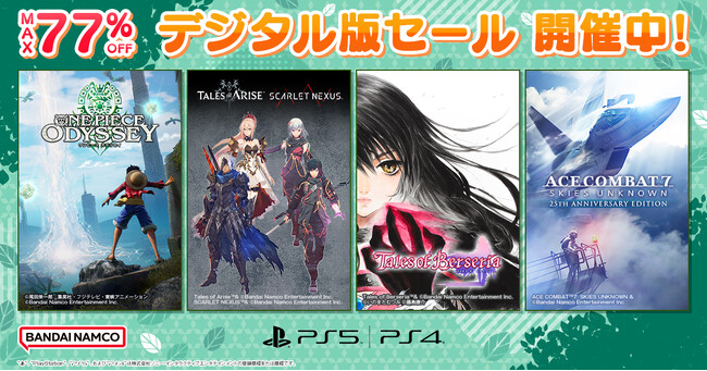 PlayStation™Storeにて開催中の『Big Games Big Deals』では、「ONE PIECE ODYSSEY」が30%OFFの6,144円(税込)、「Tales of ARISE + SCARLET NEXUS バンドル」が55%OFFの7,920円(税込)、「テイルズ オブ ベルセリア Welcome Price!!」が60%OFFの1,672円(税込)になるなど、人気の高い作品が期間限定で大幅プライスダウン。