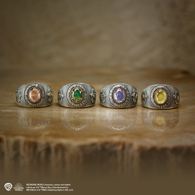 グリフィンドール、ハッフルパフ、レイブンクロー、スリザリン 4つの寮の紋章のカレッジリング。