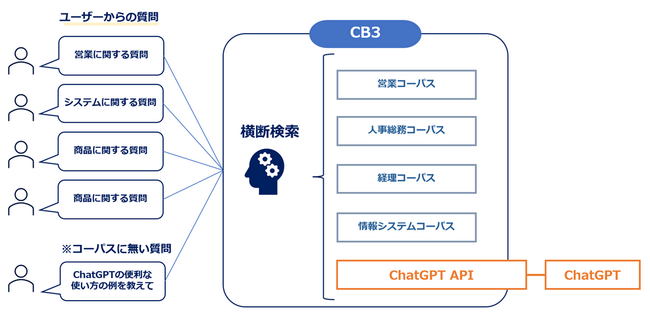 新たな連携機能により、CB3のコーパス(質問回答集)で回答できない質問に対して、ChatGPTから得られた答えを参考回答として表示することが可能になります。