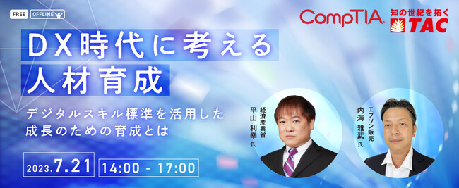 公認会計士や税理士など、多くの国家資格や検定試験の受験指導などの教育事業を展開しているTAC株式会社(東京都千代田区、代表取締役:多田敏男)は、法人向け人材教育部門から、CompTIA日本支局と共催でDX時代に考える人材育成~デジタルスキル標準を活用した成長のための育成とは~を2023年7月21日(金)に開催します。