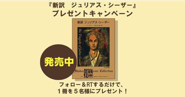 過去未来にわたり、全ての政治指導者暗殺をシェイクスピアが予言した衝撃作『新訳 ジュリアス・シーザー』(シェイクスピア 訳/河合祥一郎)が角川文庫より発売! これを記念して、2023年6月16日(金)12:00よりTwitterで書籍のプレゼントキャンペーンを行います。