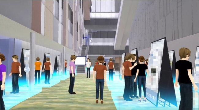 最大1,000名までメタバースに同時に参加できます。就職説明会のほか、国内外の社員が一堂に会する大型イベント等に利用できます。また、参加者同士が会話できる音声チャットや画面共有の機能、イベントに合わせたクイズパネル等の機能も提供します。今後、DNPが開発中の、生活者個人を特定するアイデンティティ情報とアバター情報の管理・認証を可能にする「PARALLEL ME(R)」と本サービスを連動させて、利用者の個別認証も可能にしていく予定です。