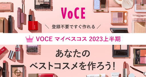 2023年上半期のベストコスメTOP3を、VOCEサイトが持つ約10万ものコスメデータベースから選んで、会員登録不要で誰でも簡単に、自分のベストコスメをまとめた1枚画像とページを生成することができます。