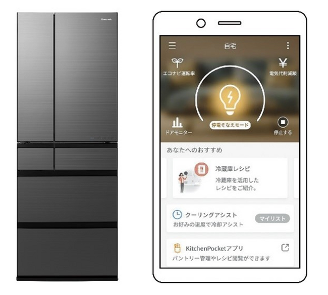 パナソニックの、インターネットにつながる無線LAN対応の冷蔵庫なら、冷蔵庫本体の節電機能だけでなく専用のスマートフォン用アプリ「Cool Pantry」でもっと賢く節電できます。