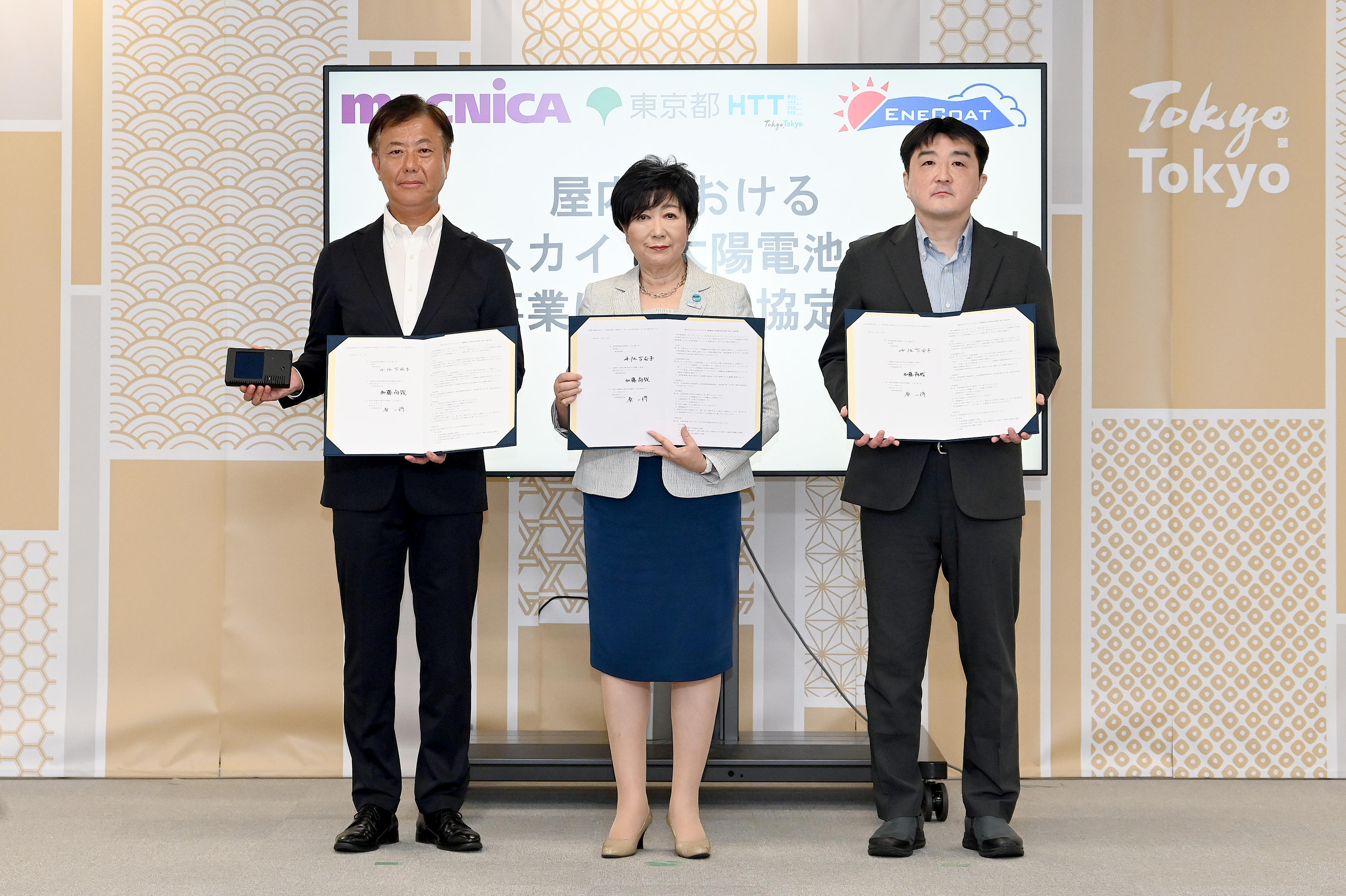 今後は、東京都庁の執務室内を、空気質モニタリング(CO2、温湿度、照度)の実証の場として活用させていただき、「ペロブスカイト太陽電池」搭載のIoTセンサー端末の量産化に向けて、検討・検証を進めていきます。これを機に、持続可能なエネルギー源となる「ペロブスカイト太陽電池」の実用化と、また、空気質改善による都民の生活品質の向上が実現できるよう、三者で積極的に取り組んでいきます。