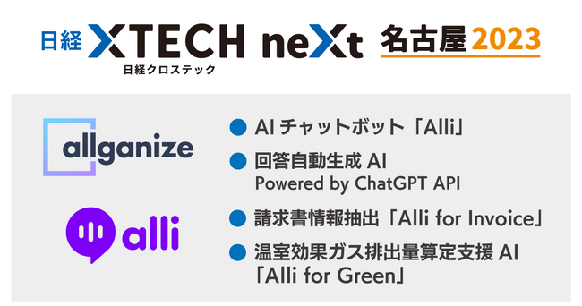 Allganize Japan株式会社(代表取締役:佐藤 康雄 、以下:「Allganize」)は、2023年6月28日(水)~ 6月29日(木)に吹上ホールで開催される「日経クロステックNEXT 名古屋 2023」に出展します。