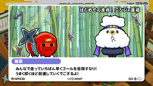 いざ、ニンジャ修行!うまく演奏して雲蔵の攻撃を蹴散らし、どんちゃんを前進させよう!