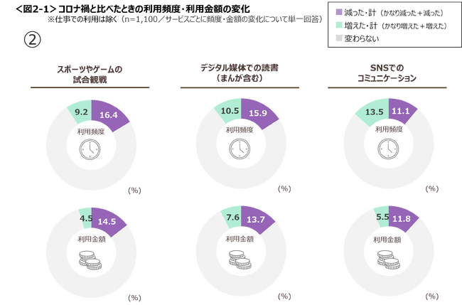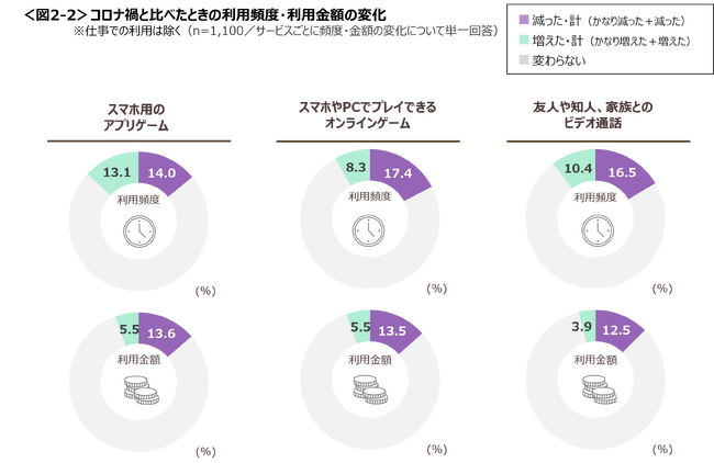 コロナ禍では、動画やラジオの視聴・配信、スマホ用のアプリゲームでオンラインサービスを利用していた人が多い。