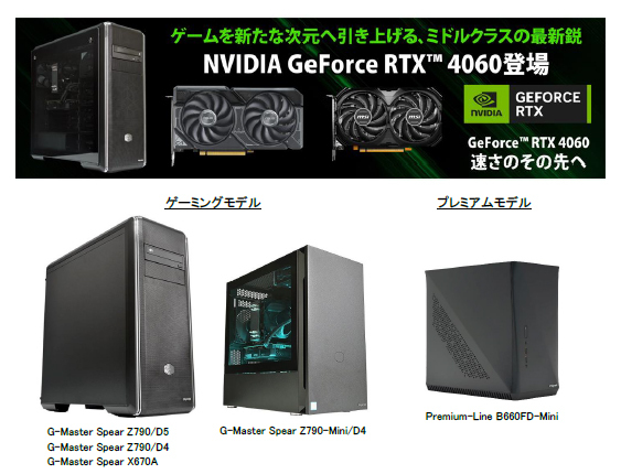 最新GPU「NVIDIA(R) GeForce RTX(TM) 4060」搭載PCが登場!