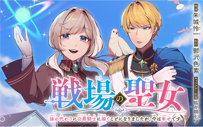 『戦場の聖女~妹の代わりに公爵騎士に嫁ぐことになりましたが、今は幸せです~』(原作:鬱沢色素 /漫画:朱城怜一 /キャラクター原案:呱々唄七つ)が2023年7月3日よりマンガアプリPalcy(パルシィ)にて連載配信をスタートします。