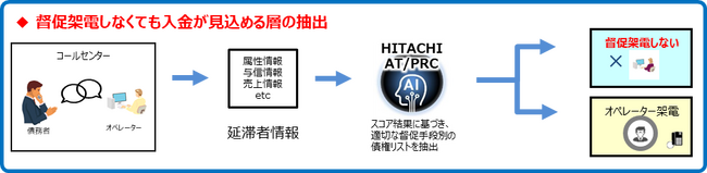 3月から提供を開始した「延滞債権と督促手段のマッチング」「延滞債権とオペレーターのマッチング」の効率化モデルと今回販売開始する「督促架電しなくても入金が見込める層の抽出モデル」は自由に選択し、必要に応じて組み合わせることが可能です。日立システムズは「債権督促効率化AIサービス」の提供を通じて、督促業務の効率性を高めるだけでなく、エンドユーザーのサービス向上に寄与することをめざします。
