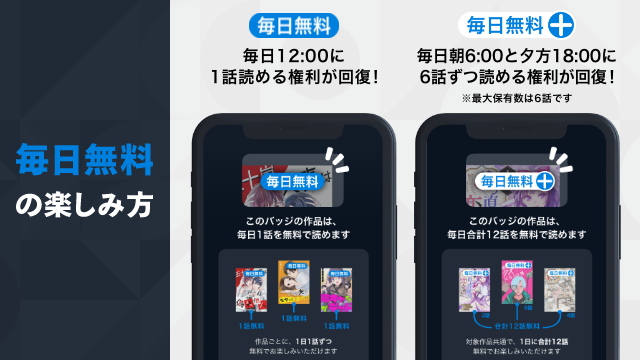 「毎日無料」と「毎日無料+」がスタート!20,000話以上が無料。対象作品も毎日追加!