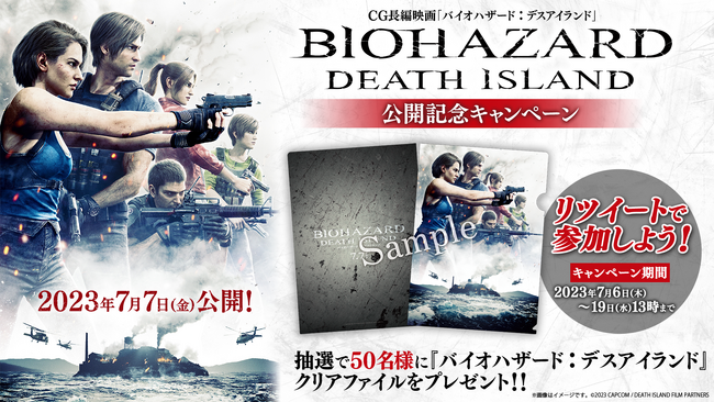 7月7日(金)のCG長編映画『バイオハザード:デスアイランド』の劇場公開を記念して、抽選で50名様にオリジナル『バイオハザード:デスアイランド』クリアファイルが当たるキャンペーンを開催します!
