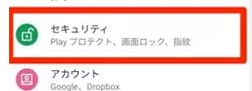 Step1:Androidスマホの「設定」を開いて「セキュリティ」を選択します。