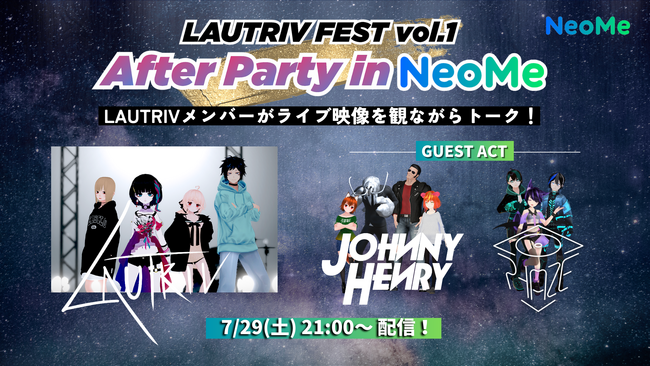 ぴあ株式会社(本社:東京都渋谷区、代表取締役社長:矢内廣)が運営するバーチャルライブアプリ「NeoMe」で、『LAUTRIV FEST vol.1 After Party in NeoMe』を7月29日に配信いたします。
