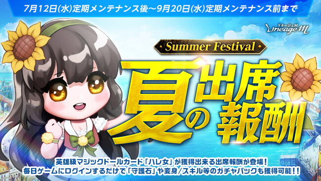 毎日受け取ることができる「出席報酬」を、Summer Festivalの開催に合わせて更新しました。