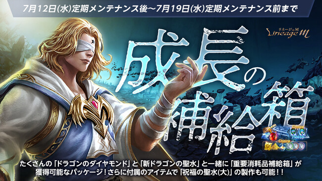 キャラクターの育成に重要な「アインハザードの祝福」を獲得できる「ドラゴンのダイヤモンド」300個と一緒に、好きなアイテムを選択して獲得出来る「重要消耗品補給箱」や、「新ドラゴンの聖水(イベント)」が獲得出来る「成長の補給箱」が登場しました。