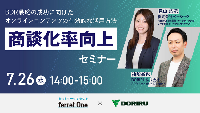 そこで今回、BtoBマーケティングのスペシャリストである当社の見山が「限られたリソースの中でいかに最小効率・成果最大を行えるか」について、DORIRU社においてBDR Associate Directorを務める袖崎氏が「BDRとコンテンツマーケティングの融合」について解説いたします。
