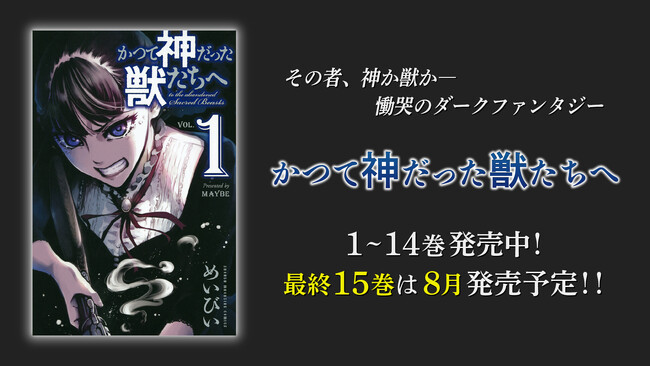 8月8日、めいびいによる漫画「かつて神だった獣たちへ」の最終第15巻が発売予定!堂々の完結を迎えることを記念しまして、講談社が運営するYouTubeチャンネル「フル☆アニメTV」にて、TVアニメ「かつて神だった獣たちへ」全12話を無料配信いたします。本日7月14日から7月27日までの期間限定配信となりますので、原作コミックスと一緒にぜひお楽しみください!
