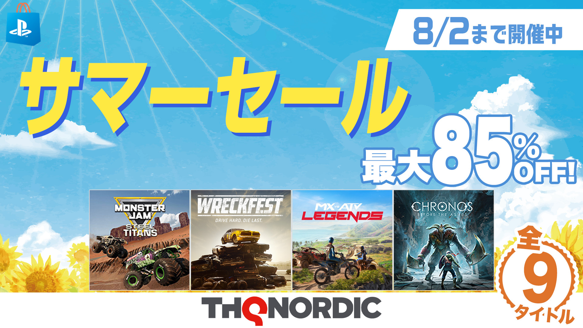 THQ Nordic Japan株式会社は、PlayStation™Store SUMMER SALEにて、全9タイトルが最大85%オフでお買い求めいただける「THQ Nordic サマーセール第二弾」を実施中です。