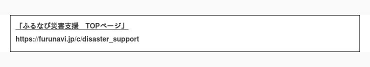 ふるさと納税サイト「ふるなび」( (リンク ») )にて、ふるさと納税制度を活用した緊急災害支援窓口を開設します。