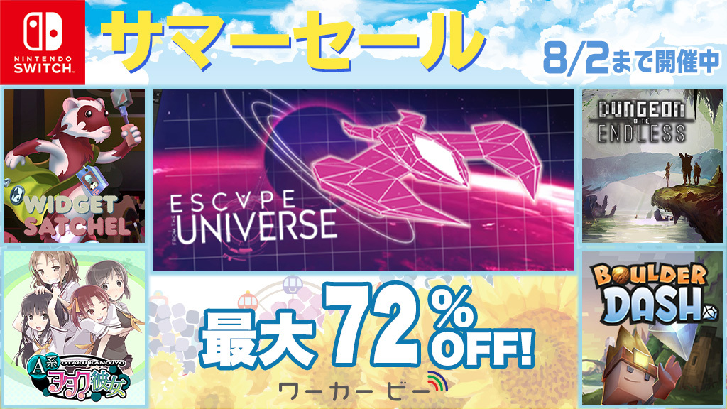その他、かわいいフェレットのアクションゲーム『ウィジェット・サッチェル~フェレットのたからもの~』、甘ずっぱさがあふれる学園アドベンチャー『A系ヲタク彼女』、ローグライクとタワーディフェンスが融合したSFダンジョン探索RPG『ダンジョン オブ ジ エンドレス(Dungeon of the ENDLESS™)』、1980年代に人気を博した元祖レトロゲーム『バルダーダッシュ:Boulder Dash – 30th Anniversary』など、全5タイトルがお得な価格でお楽しみいただけます。