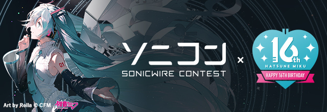 「ソニコン」は、クリプトンが運営するデジタルクリエイター向けダウンロードストア『SONICWIRE(ソニックワイヤ)』( (リンク ») )が、クリエイター応援企画の一環として主催している楽曲コンテストです。このたび行われたコンテスト「ソニコンコラボ: -初音ミク Happy 16th Birthday- 編」はその第三弾にあたり、『初音ミク』の16周年プロジェクト「初音ミク Happy 16th Birthday -Dear Creators-」( (リンク ») )とのコラボレーションで、初音ミクが歌唱する楽曲を募集。合計773作品が集まりました。