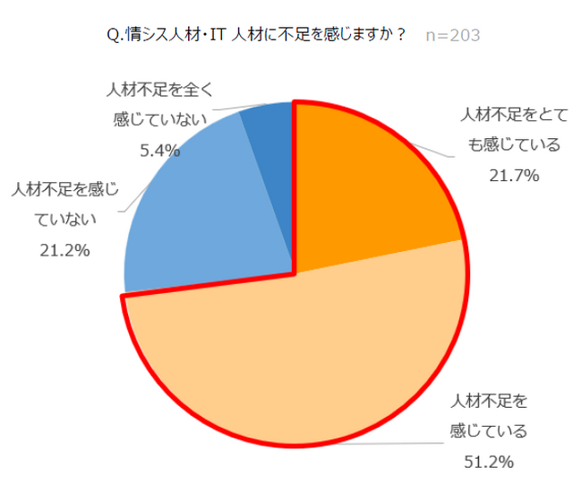 ■約7割が情シス・IT人材の不足を実感、一方で「人員増加の予定がない」との回答が半数以上