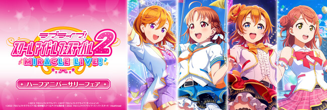 2023年9月22日(金)~10月31日(火)まで、「ラブライブ!スクールアイドルフェスティバル2 MIRACLE LIVE! ハーフアニバーサリーフェア」を実施いたします。