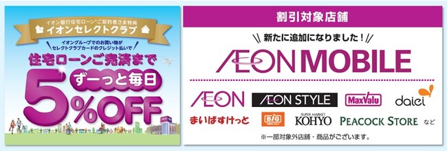 株式会社イオン銀行(以下、イオン銀行)と、イオンリテール株式会社(以下、イオンリテール)は、2023年8月1日(火)より、イオン銀行住宅ローンご契約者さま特典である『イオンセレクトクラブ』の割引対象へ、イオンリテールが運営するMVNOサービス「イオンモバイル」を追加いたします。※1)