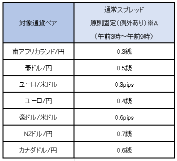 ※キャンペーンスプレッドの提示時間帯はすべて対象期間中の各営業日の午前9時~翌午前3時。同期間中の通常スプレッドは各営業日の午前3時~午前9時に提示。