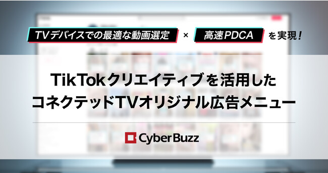 ソーシャルメディアマーケティング事業を展開する株式会社サイバー・バズ(本社:東京都渋谷区、代表取締役社長:高村 彰典)は、当社運営メディア「to buy」とコネクテッドTV広告を連携させたオリジナル広告メニューを提供開始いたします。当社運営メディア「to buy」公式TikTokアカウント( (リンク ») )で商品紹介をし、バズった縦型動画クリエイティブをコネクテッドTV広告のフォーマットに変換し、広告を配信いたします。TVCMでは困難な短期間かつ低コストでCMクリエイティブを検証し、TVデバイスでの最適な動画選定および高速PDCAの実現に繋げます。