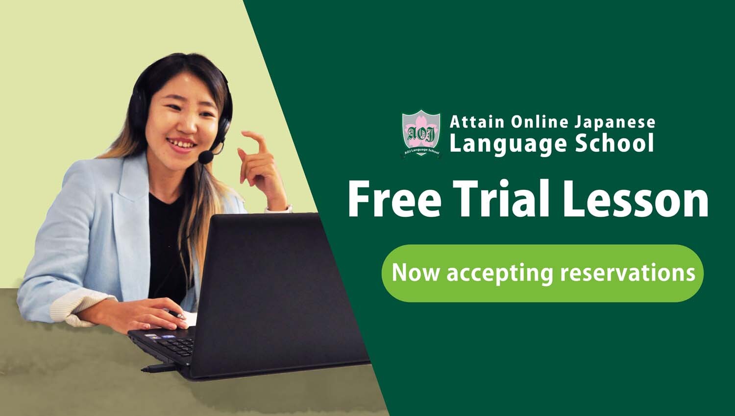 オンライン日本語学習サイト(Attain Online Japanese)運営、eラーニング制作のアテイン株式会社(本社:東京都千代田区、電話:03-3255-4721、代表 本多成人、資本金1億1470万円)が運営するオンライン日本語学校AOJランゲージスクールにて、2023年秋学期開講に向け、9月3日にレベル別無料体験レッスンを開催することになりました。どなたも参加は無料で、事前申し込みが必要です。参加ご希望の方は、各レベルの無料体験レッスンの日時をご確認の上、メールあるいはHPのお問合せフォームよりお申し込みください。