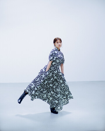 巻頭では8Pにわたって、サステナブルなドレスを身に纏った撮りおろしのファッションシューティングとインタビューを掲載します。撮影が行われたのは、7月下旬の都内スタジオ。衣装選びでは、用意された洋服のデザインや素材、ディテールなどを自らしっかりと吟味。「どんなふうに撮影しますか?」「そういう意図であれば、甘くならないほうがよさそうですね」「この服は裾に動きが出て綺麗だと思います」など、こちらの意図や求める写真に対して、ご自身の意見を控えめに、でもしっかりと伝えてくださり、コラボレーションとして撮影