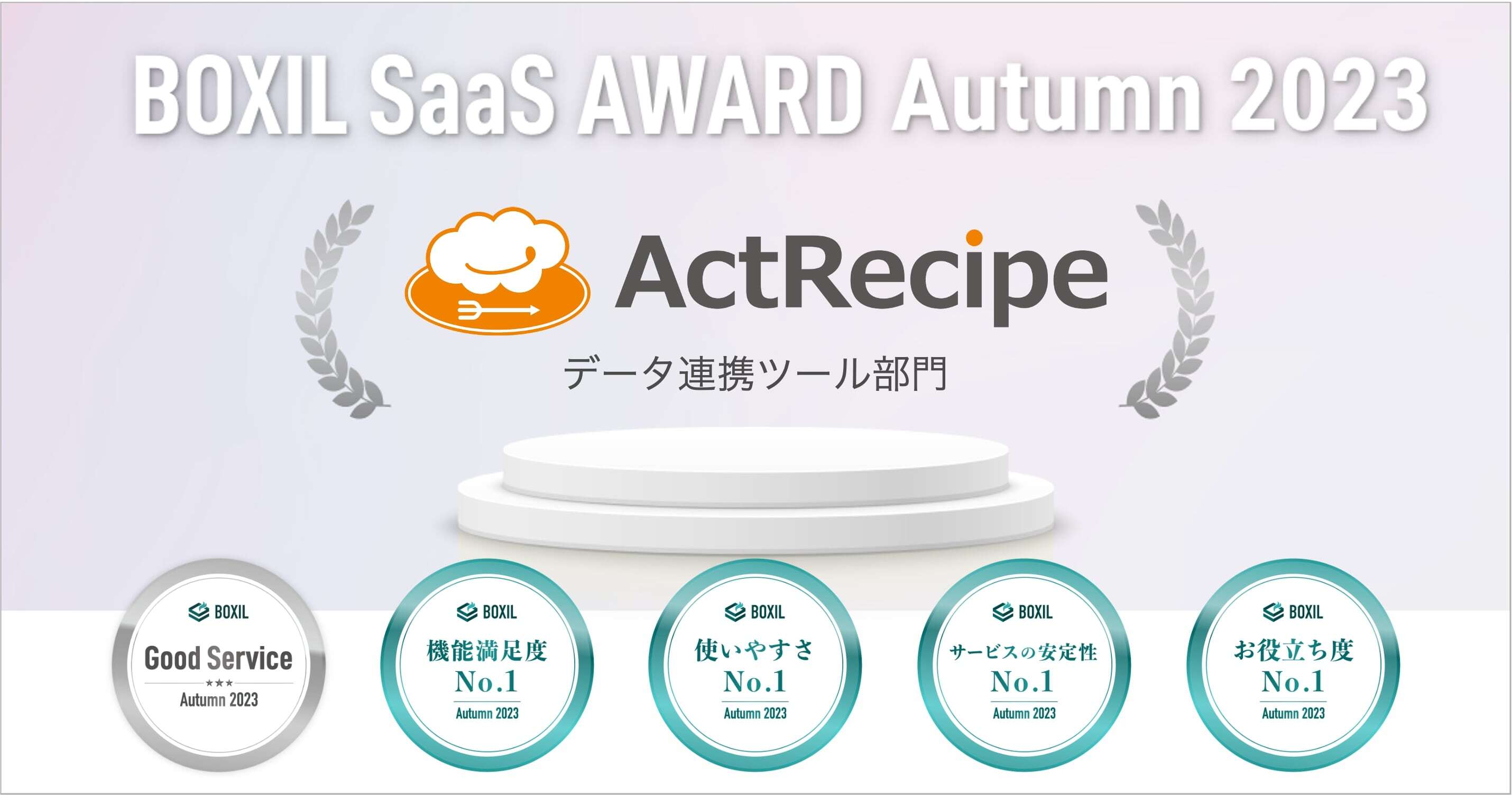 iPaaS「ActRecipe」、「BOXIL SaaS AWARD Autumn 2023」データ連携ツール部門にて「Good Service」ほか4つのNo.1を受賞