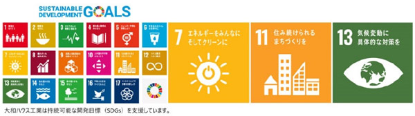 大和ハウスグループ「第7次中期経営計画(2022年度~2026年度)」においては、「すべての建物の脱炭素化によるカーボンニュートラルの実現」を重点テーマの一つとして掲げ、戸建住宅への高効率設備の導入による省エネや太陽光発電システムの搭載などの創エネにより、ZEH(※4)への対応を推進するとともに、防災配慮型の太陽光発電システムや家庭用リチウム蓄電池を採用した戸建住宅の提案などを進めています。