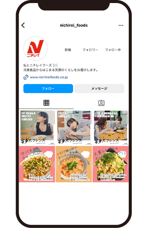 企業コンセプトである「くらしに笑顔を」を基軸に、「食べる人」が主役のアカウントとして、ニチレイの冷凍食品からはじまる笑顔のくらしや、手軽に美味しく楽しめるアレンジレシピなど、様々なコンテンツを配信してまいります。