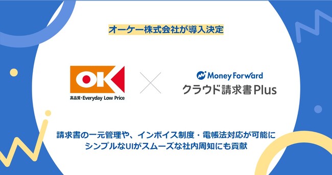 株式会社マネーフォワードは、オーケー株式会社が、『マネーフォワード クラウド請求書Plus』 を導入したことをお知らせします。