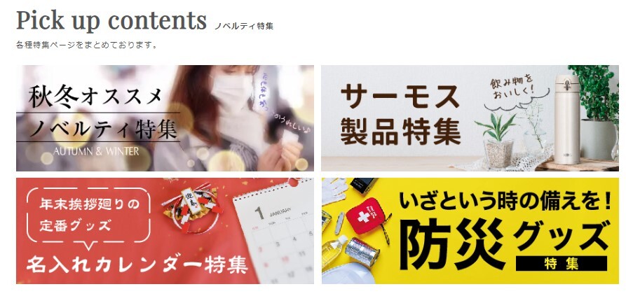 秋冬シーズンにピッタリのノベルティを特集したページです。