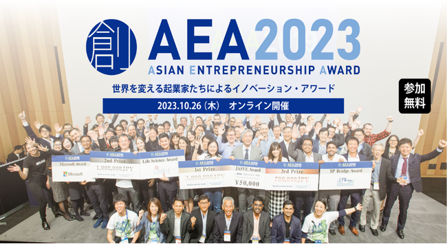 アジア・アントレプレナーシップ・アワード(以下:AEA)運営委員会は、2012年より毎年開催している、成長著しいアジアのスタートアップによるイノベーション・アワード「AEA2023」を、2023年10月26日(木)にオンラインで開催いたします。