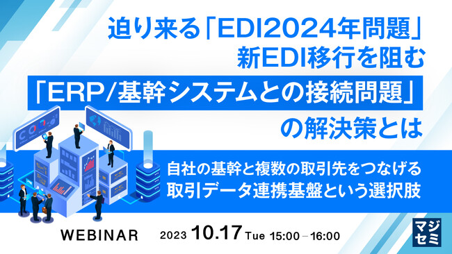本セミナーは、新EDIへの移行を検討するなかで、社内のERP/基幹システム連携に課題を感じている方、EDI移行時の取引先との調整やシステム導入・運用設計の負担を軽減したい方、将来的な取引データの利活用に関心のある方に、特におすすめです。