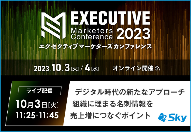 Sky株式会社が「エグゼクティブ マーケターズ カンファレンス」にて、『デジタル時代の新たなアプローチ 組織に埋まる名刺情報を売上増につなぐポイント』をテーマにセミナーを実施いたします