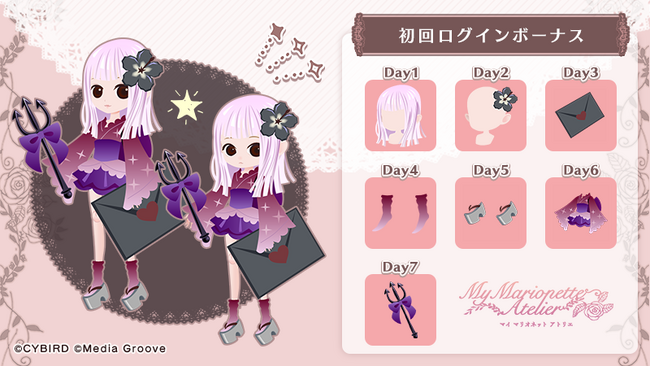 新規でアプリをインストールした日から合計7日間アプリにログインすると、着せ替えアイテムが手に入る初回ログインボーナスを開始しています。