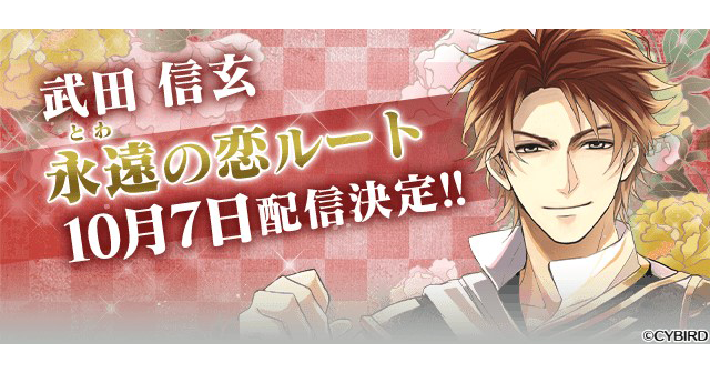 株式会社サイバード(本社:東京都渋谷区、代表取締役社長 兼 CEO 本島 匡)の手掛ける、全世界でのシリーズ累計会員数4,000万人を誇る女性向け恋愛ゲーム「イケメンシリーズ」の人気タイトル『イケメン戦国◆時をかける恋』は、2023年10月7日(土)12時より、「武田信玄(CV:梅原 裕一郎)」の本編のさらなる恋物語「永遠(とわ)の恋」ルート(以下、「永遠の恋」ルート)の配信を開始します。
