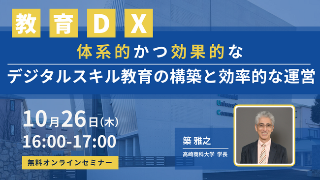 今回、高崎商科大学より築学長をお招きし、デジタルスキル教育において、遠隔授業を取り入れた教育の効果的・効率的な運営と教育成果、今後の課題について、同大学の具体的事例とともに解説いただくセミナーをオンラインで開催いたします。