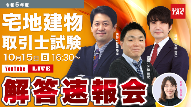 ※当日にライブ配信を視聴できなかった方は、 後日TAC宅建士講座のYouTubeチャンネルにて解答速報会の模様をアーカイブ視聴が可能です。 ぜひご覧ください。