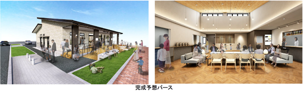 本施設は、カフェや物販、飲食店舗の他、飲食や休憩ができるコミュニティスぺースやキッズスペースなどを設けた「地域交流促進施設」と、ヨガやダンスなどで使用できる「健康増進施設」で構成。カフェは市原市内に複数店舗を構える「787 Nanohana Coffee roaster」、飲食店はジビエなど地元の食材を使用した店舗「時代家」、千葉市のカフェや市原市のわらび餅専門店等を運営する「株式会社POTRIVER」の3社に出店していただくことで、地域の活性化を促進します。「健康増進施設」は、ヨガやダンスなどのスクールを行うことのできる時間貸しスペースを地域の複数の事業者向けに提供します。